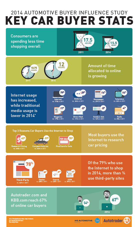 Since 2011, the IHS Automotive Buyer Influence Study has provided groundbreaking information about the influence of media among New and Used Car Buyers. This infographic highlights key statistics from the 2014 Automotive Buyer Influence Study, including: