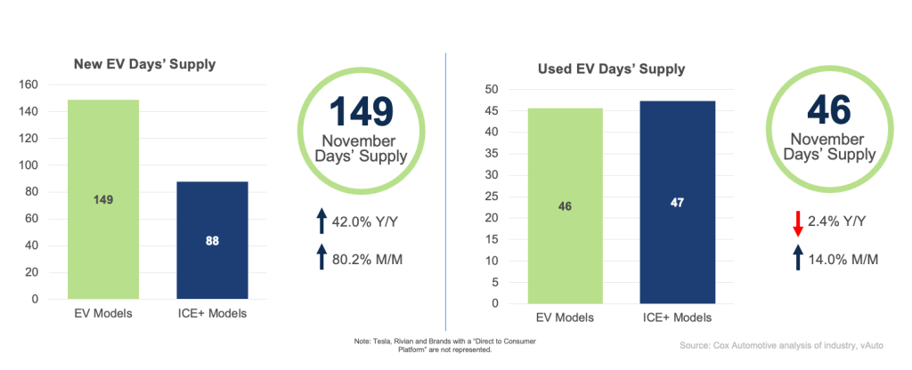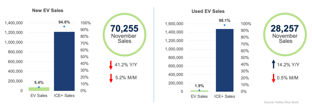 The EV Market Monitor gauges the health of the new and used electric vehicle (EV) markets by monitoring sales volume, days’ supply and average pricing. Each metric will be measured month over month and year over year. For the latest detailed new-EV sales report, see the Q3 Electric Vehicle Report, the official quarterly report of EV data.