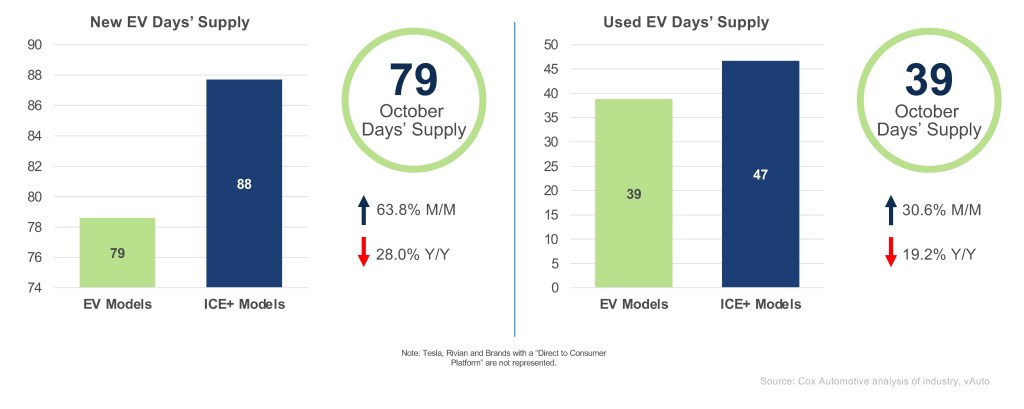 The EV Market Monitor gauges the health of the new and used electric vehicle (EV) markets by monitoring sales volume, days’ supply and average pricing. Each metric will be measured month over month and year over year. For the latest detailed new-EV sales report, see the Q3 Electric Vehicle Report, the official quarterly report of EV data.