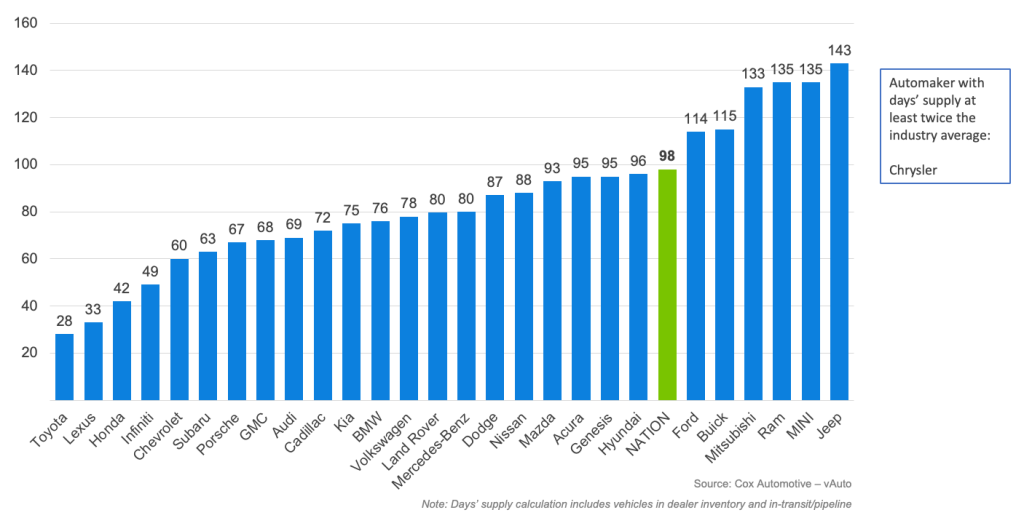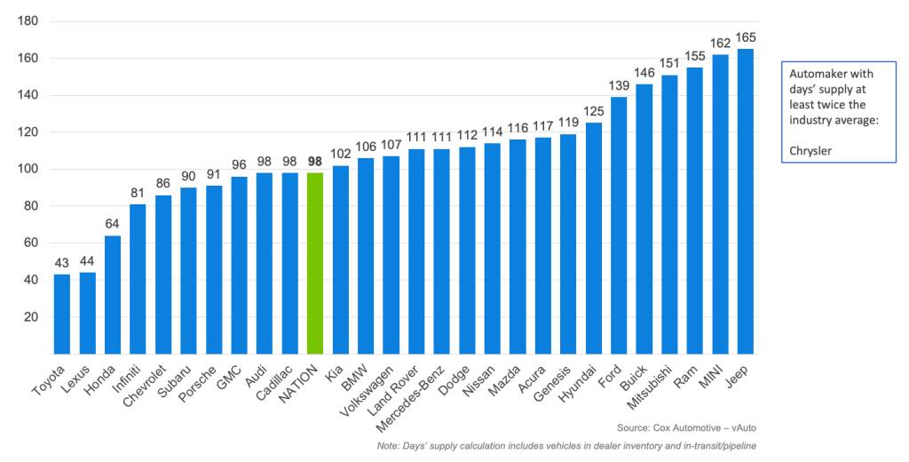 Across mainstream brands, the pattern is consistent and distinct: Inventory counts are relatively stable, but slower sales are driving higher days’ supply.