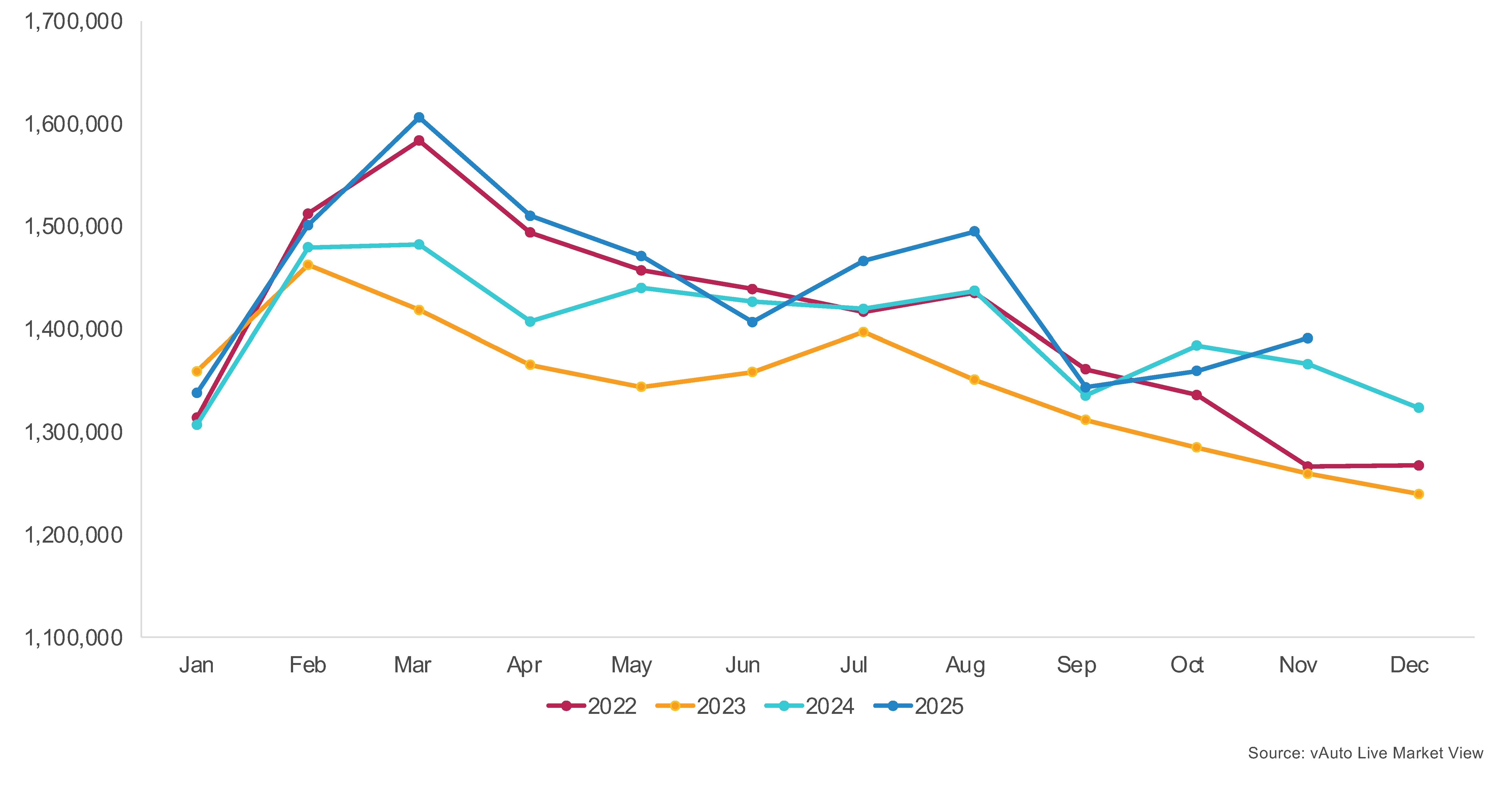 “Used-vehicle inventory continues to build, reaching a new high for 2025 as December begins,” said Scott Vanner, manager of Economic and Industry Insights at Cox Automotive. “This sustained increase, paired with steady sales and easing prices, reflects a market where affordability and improving credit conditions are drawing buyers to used vehicles.”