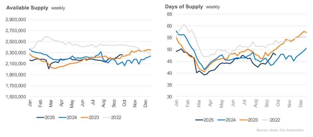 Though October represents the first month in 2025 to see days’ supply outperform the prior year, supply remains constrained and below levels observed in recent years, as well as in 2019.