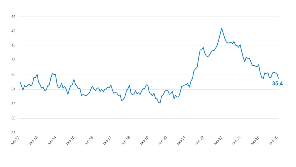 The typical monthly payment in February was essentially flat at $756, down 0.1% from January but still 3.1% higher year over year. The number of median weeks of income needed to purchase the average new vehicle declined to 35.4 weeks from 35.6 weeks in January. The average monthly payment peaked at $795 in December 2022.