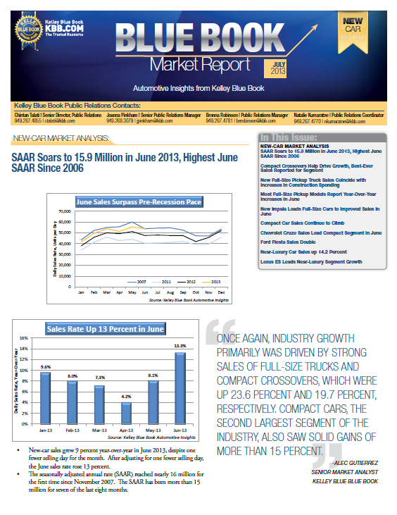 Kelley Blue Book New Car Market Report – May 2013 May. 31, 2013 1 min Read The Kelley Blue Book New Car Market Report is a monthly publication that explores the state of the automotive industry. Market Reports Related Market Insights Protected: Manheim Used Vehicle Value Index Data Files 1 min Read Uncategorized Cox Automotive’s vAuto and UVeye Bring AI-Powered Vehicle Inspections to Market 4 min Read Uncategorized CDP 101: What Is an Automotive CDP and Why Should It Matter to You? 6 min Read