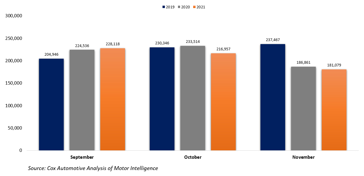 Certified pre-owned (CPO) sales fell to 181,079 units in November. This sales level reflects a 17% month-over-month decrease and a 3% year-over-year decrease. November CPO sales slowed for the second consecutive month, following a strong performance during the first three quarters of the year.