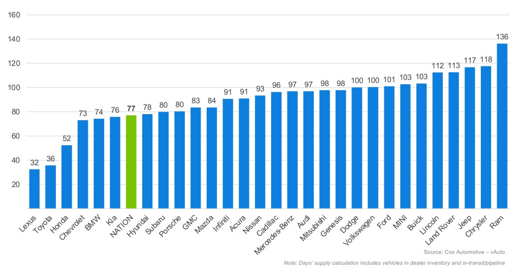 Within the Stellantis portfolio, niche players like Fiat and Alfa Romeo are shrinking inventory. Whether this signals a broader strategic shift or a potential wind-down of these brands in the U.S. remains to be seen. Their reduced presence could open the door for Stellantis to reallocate resources toward more competitive segments or emerging technologies. The same could be said for low-volume, import-focused brands like MINI, Infiniti and Jaguar (Jaguar is in the midst of a strategic rethink; days’ supply is more than twice the industry average). Meanwhile, brands like Toyota, Honda and Kia are seemingly holding production in balance with demand. Chevrolet and Mazda are showing strong inventory discipline as well.