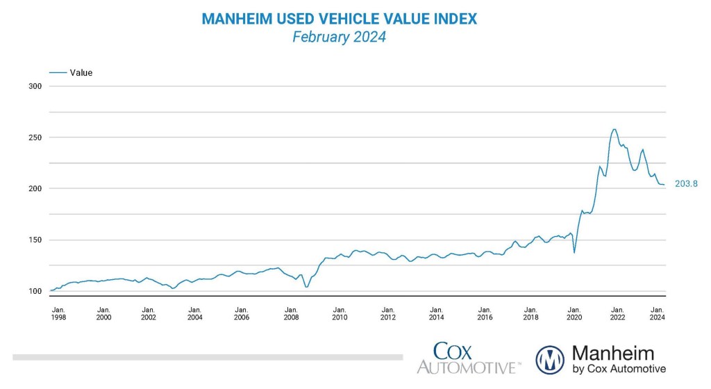 “Though February activity was muted as we started the month, we saw more activity in the lanes at Manheim in the second half of the month and finished the last week of February with some of the strongest weekly gains in wholesale prices for many years,” said Jeremy Robb, senior director of Economic and Industry Insights for Cox Automotive. “Tax refunds have picked up over the last two weeks, with the average refund now 4% higher than 2023 levels at this time. This has put money into consumers’ pockets, and retail purchase activity is increasing. In turn, dealers are coming to the lanes and buying units at Manheim right at the start of the spring selling season for wholesale markets.”