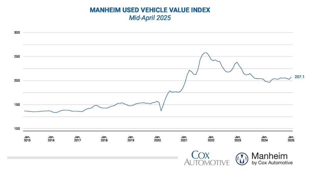 “Wholesale markets were not as strong as usual in March, but they turned on a dime the last week of the month and into early April as tariffs were implemented,” said Jeremy Robb, senior director of Economic and Industry Insights at Cox Automotive. “In the first two weeks of April, we’ve seen much stronger sales conversion and pricing trends at Manheim, as dealers look to replenish inventory on the back of higher used retail demand. Valuation trends are likely to stay elevated through Q2 relative to normal, but appreciation trends in the second week of the month were not quite as strong as the first, so the frenzy could already have peaked. With the volatility in the financial markets, it’s not surprising to see some impact on the consumer’s appetite.”