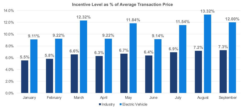 Electric vehicle incentives and discounts were elevated in Q3, which helped fuel higher sales. In Q3, incentives averaged more than 12% of the average transaction price (ATP), much higher than the industry-wide average of approximately 7%.
