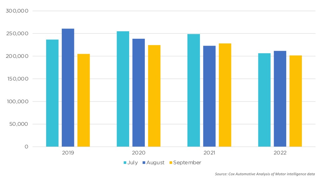 Certified pre-owned (CPO) sales in September fell nearly 5%, just under 10,000 units, from August to finish at 201,707. This total is down over 26,000 units from last year and is the lowest monthly total since February of this year. 2022 CPO sales are down 15% year to date.